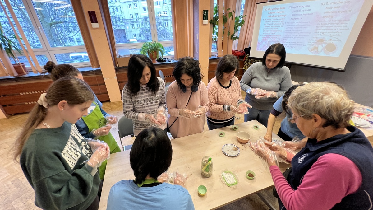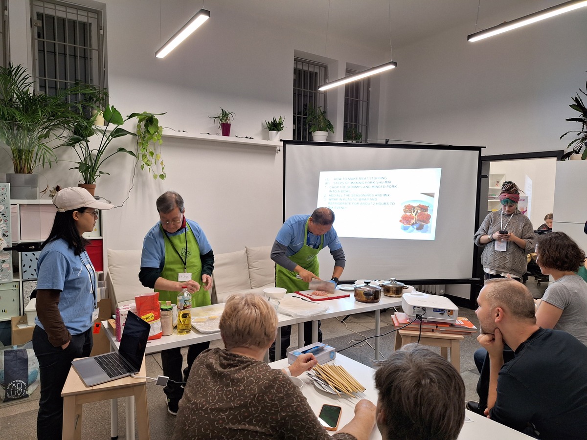 During the Christmas holiday in 2023, we have short-term missionary teams that came to Poland from different places around the world, including brothers and sisters from the United States, Canada, the United Kingdom, Taiwan, and Hong Kong. The Lord has greatly used their strengths and talents to help out in classes and meetings. It's so precious that the team was passionate to gain people, and we once distributed flyers on the streets at -18 degrees. We also started designing Asian food classes to communicate with local people.